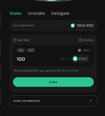 Step 3: Stake KNC