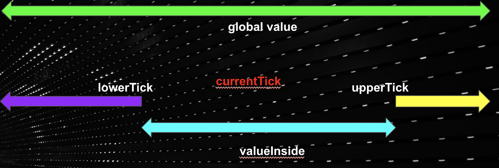 The goal is to accurately account a position's accured fees accured and duration for which it is active. A position is defined to be active if the current pool tick lies within the lower and upper ticks of the position.