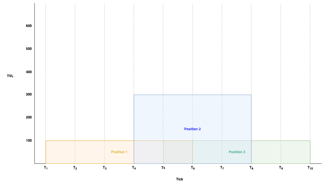 <figure><img src="https://1368568567-files.gitbook.io/~/files/v0/b/gitbook-x-prod.appspot.com/o/spaces%2Fw1XgQJc40kVeGUIxgI7c%2Fuploads%2Fgit-blob-82824e9eb3d97b89a044681b8d1ad5f69dfd463b%2FTick-Range-TVL%20Overlay.drawio.png?alt=media" alt=""><figcaption><p>3 separate liquidity positions</p></figcaption></figure>