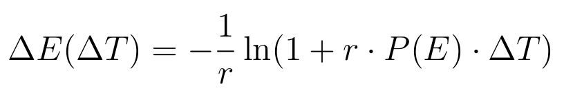 Rearranging the formula above, you find that `r = ln(initialPrice / minPrice) / E)` or `r = ln(1 / pMin) / E`
